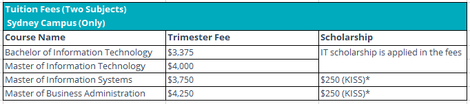 2. This intensive intake is for onshore students only. The above tuition fees are for two subjects only.