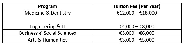 Tuition ranges from €3,000 – €18,000 per year depending on the program.