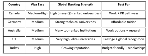 - Post-Study Plans: Countries like Canada and Germany offer clearer pathways to work and settlement.
