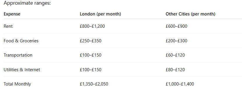 UK living costs can be very high in London and the Southeast but cheaper in the North.