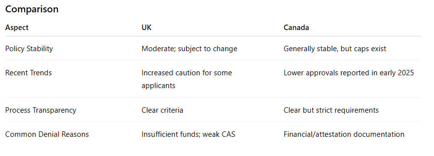💡 Visa Strategy Tip: Submit strong proof of finances, academic preparedness, and clear educational intentions — these are crucial in both systems.