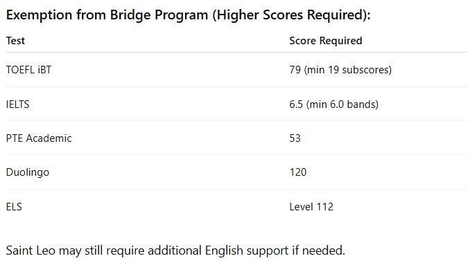 Students may be placed in the Bridge Program based on English scores.