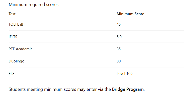 - English language requirements & Bridge Program